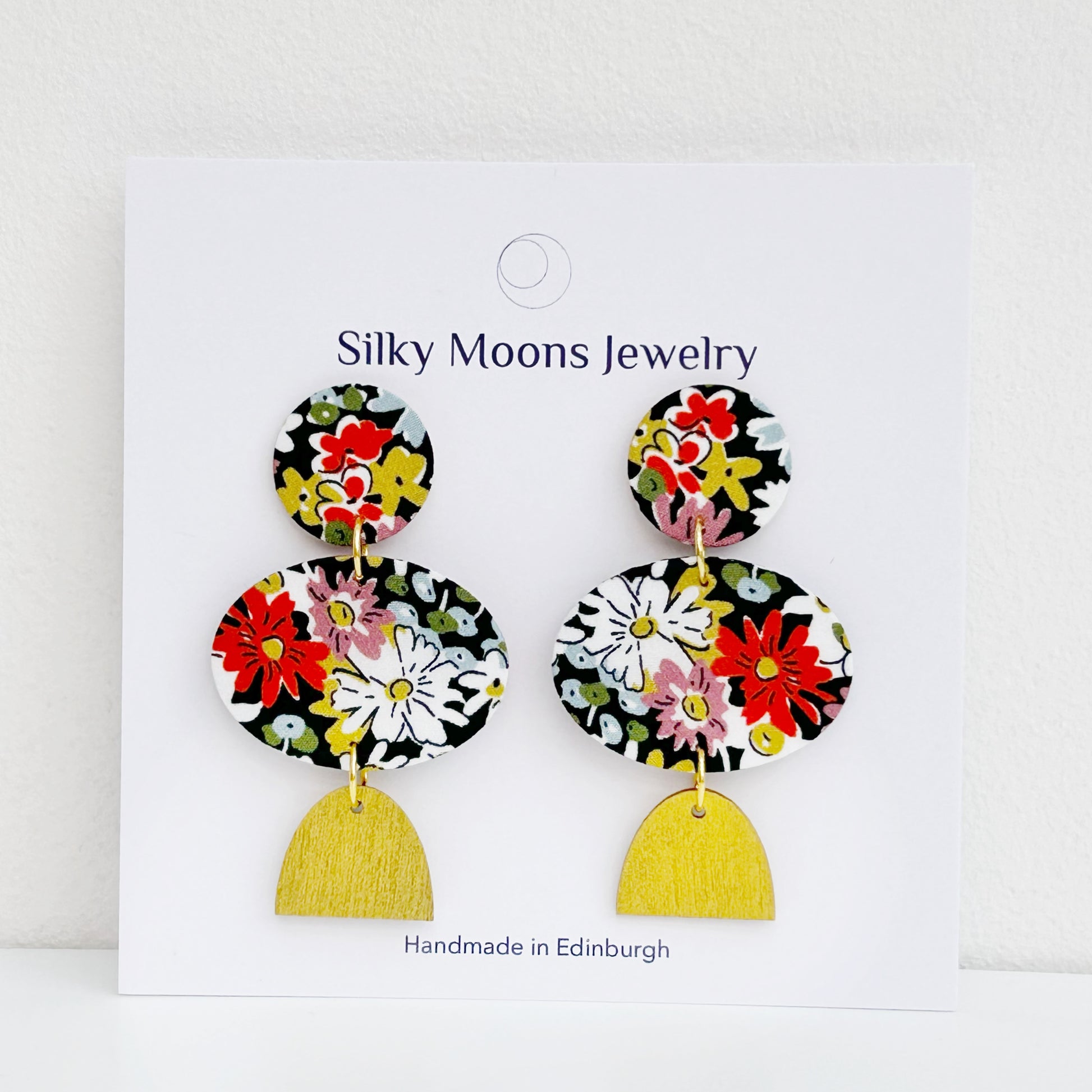 They are lightweight, made from up-cycled cardboard cover with Liberty floral silk fabric attached to plywood.
