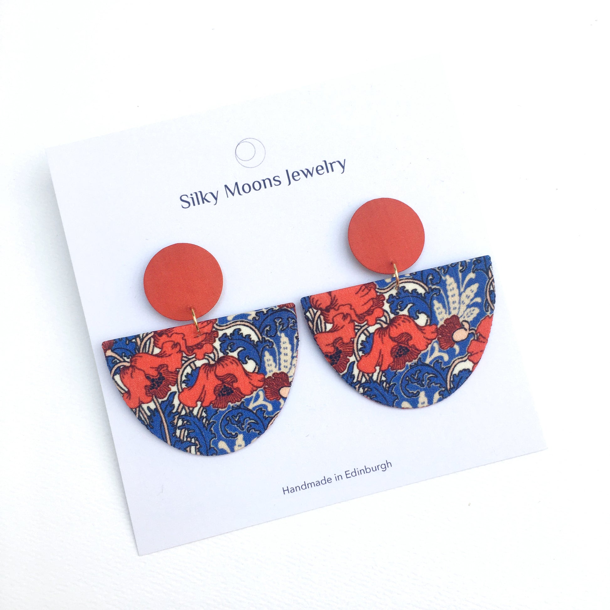 They are lightweight, made from up-cycled cardboard cover with Liberty silk fabric in lovely poppy flower pattern.