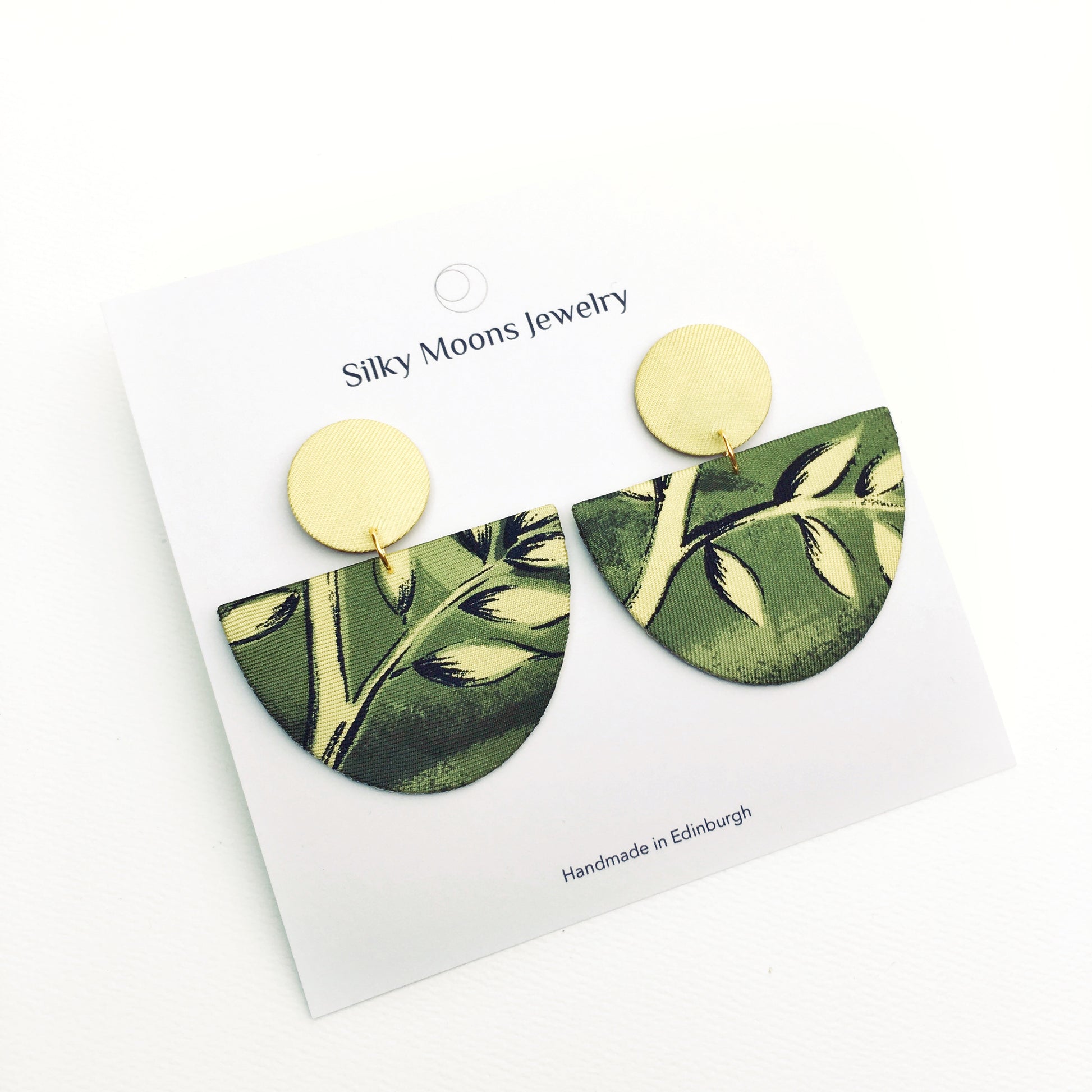 They are lightweight, made from up-cycled cardboard cover with vintage silk fabric in lovely green leaves branches pattern.