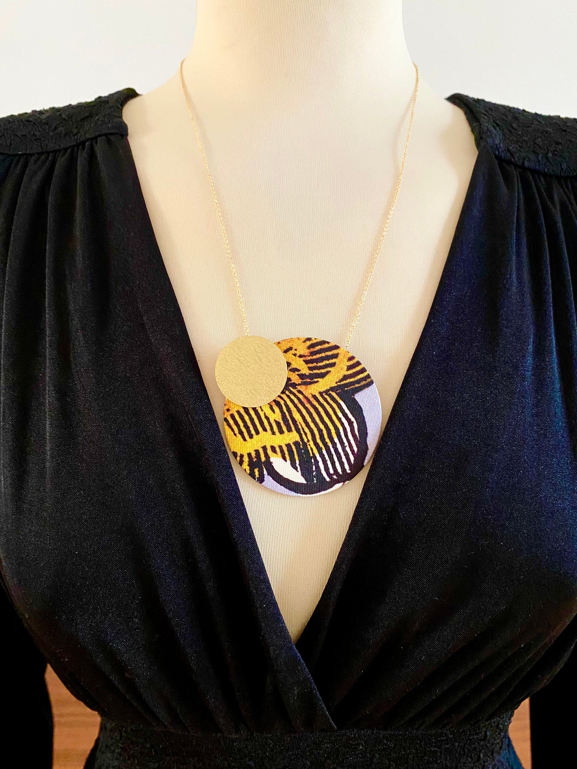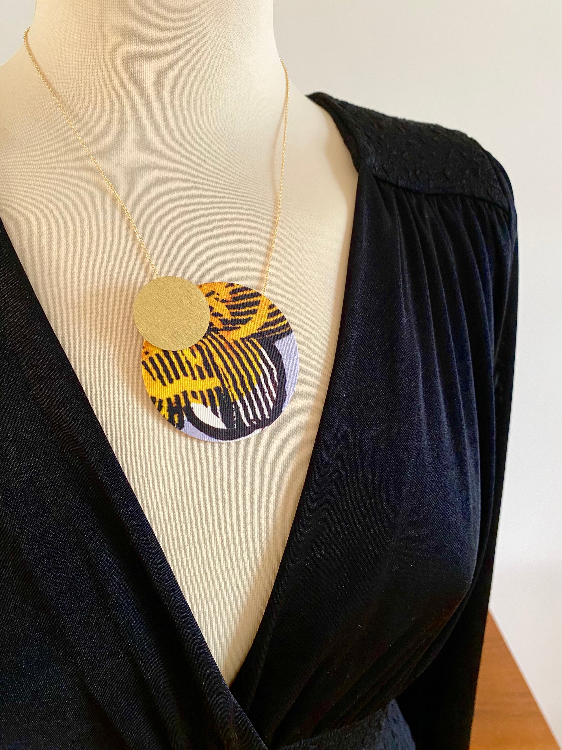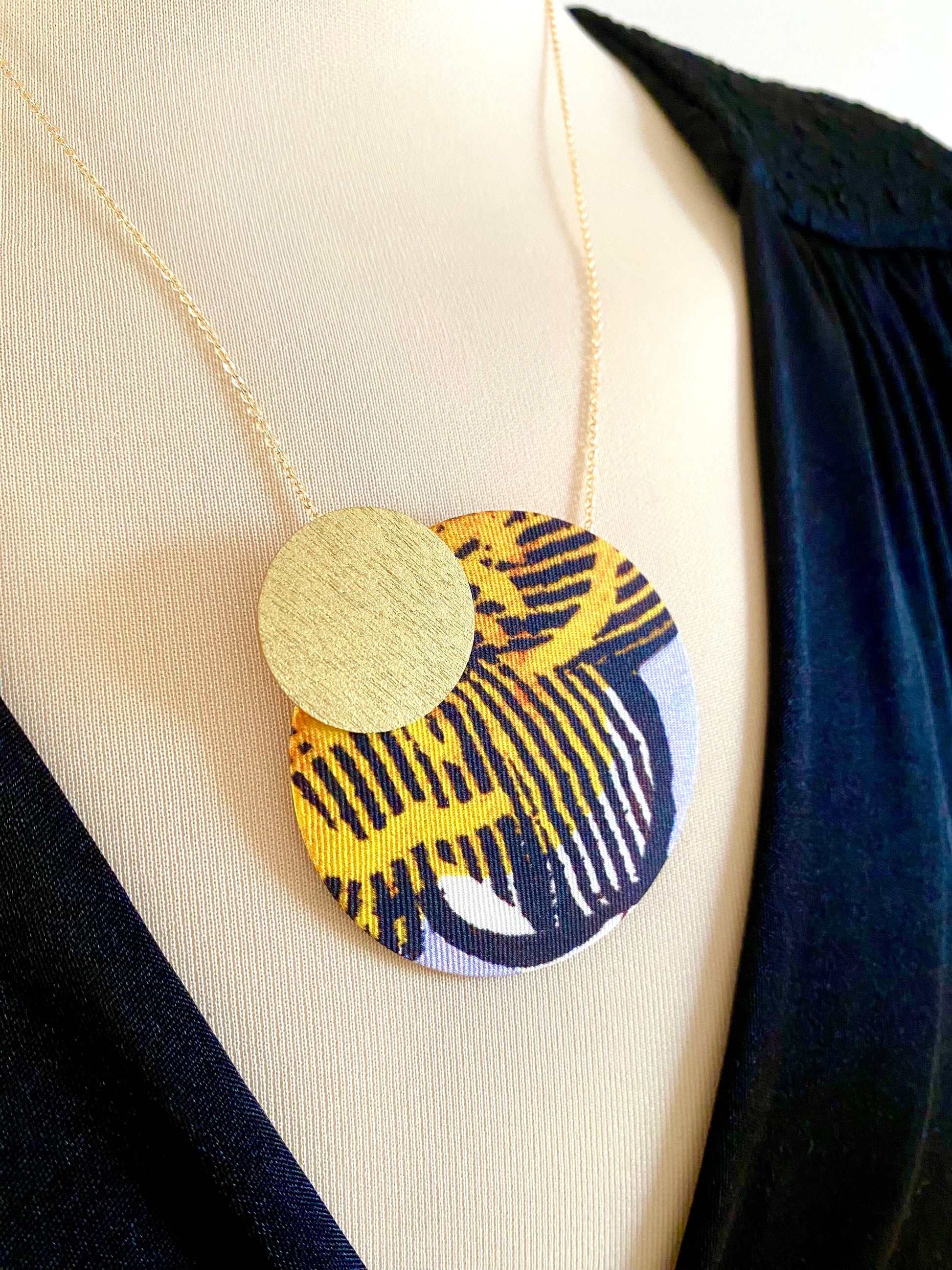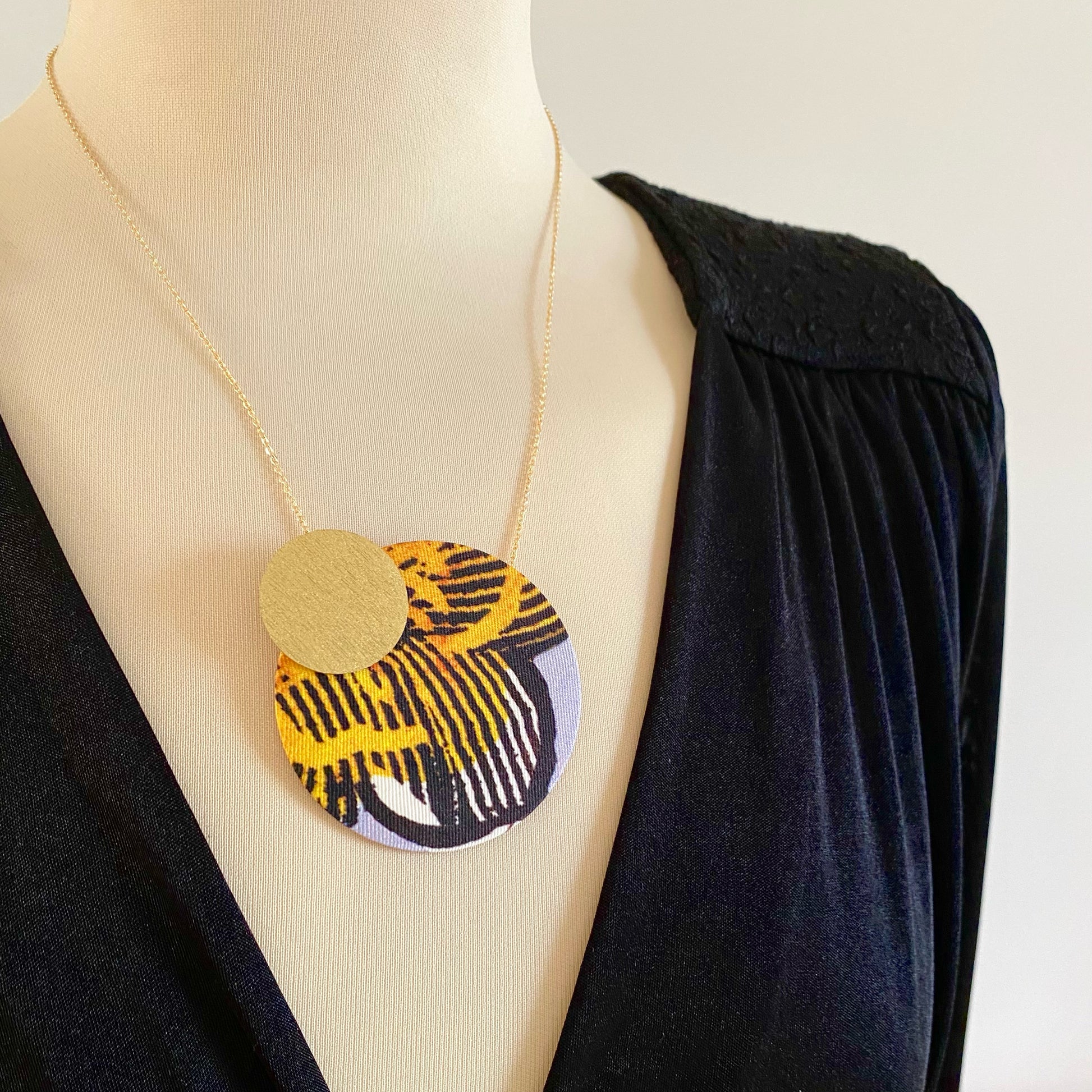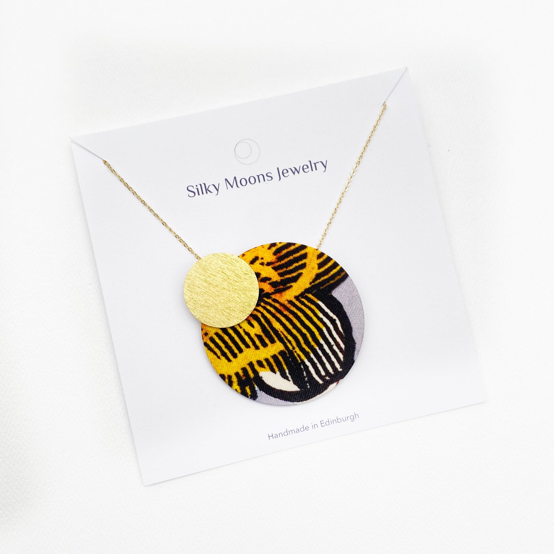 Lightweight made from up cycled cardboard cover with silk fabric, attached to circle laser cut plywood 0.8mm. Handcrafted and precisely finished.
